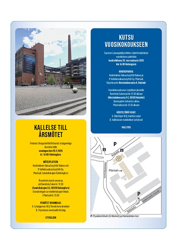 Sääntömääräinen vuosikokous pidetään keskiviikkona 26. marraskuuta 2025 klo 14.00 Helsingissä.